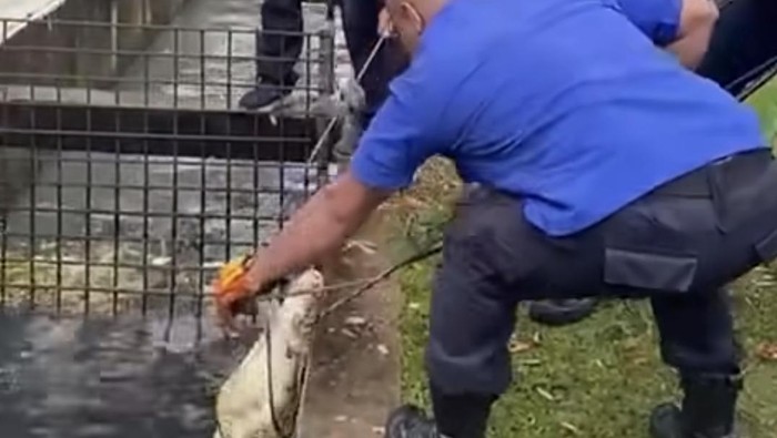 Namun beberapa hari yang lalu pihaknya mendapatkan laporan bahwa buaya tersebut kembali keluar. Akhirnya, berkat kerjasama tim akhirnya buaya tersebut dapat ditangkap.
