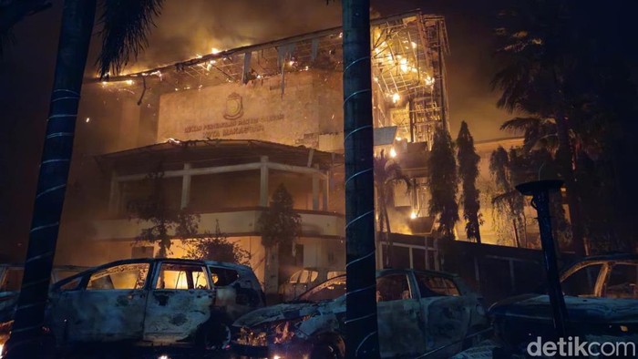 Gedung DPRD Makassar, Sulawesi Selatan (Sulsel) dibakar massa. Ternyata saat kejadian, legislator hingga Wali Kota Makassar Munafri Arifuddin sedang melakukan rapat paripurna.