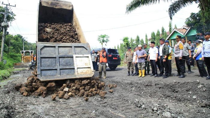 Gubernur Sumatera Selatan Herman Deru meninjau jalan lintas Sekayu-Muara Beliti yang mengalami kerusakan imbas kendaraan ODOL (over dimension over load). Dari total panjang ruas jalan Sekayu-Muara Beliti sekitar 115 kilometer, hampir 50% atau 50-an km kondisinya mengalami kerusakan di sejumlah titik.