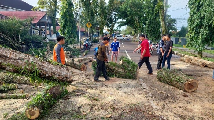 Hujan deras dan angin kencang di wilayah Musi Banyuasin, Sumatera Selatan, mengakibatkan pohon tumbang. Akibatnya, akses jalan sempat terganggu. Namun, tak ada korban jiwa dalam kejadian itu.