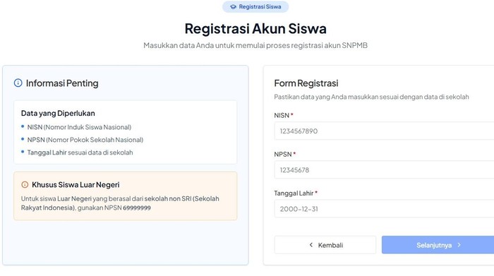 Untuk registrasi akun siswa dilakukan melalui laman Portal SNPMB. Siswa mendaftar akun menggunakan NISN, NPSN, dan tanggal lahir. Kemudian melakukan aktivasi akun menggunakan email. Inilah panduan lengkap registrasi akun SNPMB siswa 2025