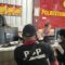 Genangan air akibat hujan membuat arus lalu lintas di Jalan Sumatera Palembang macet parah. Petugas Polsek Sukarami berjaga di lokasi untuk mengatur lalu lintas.