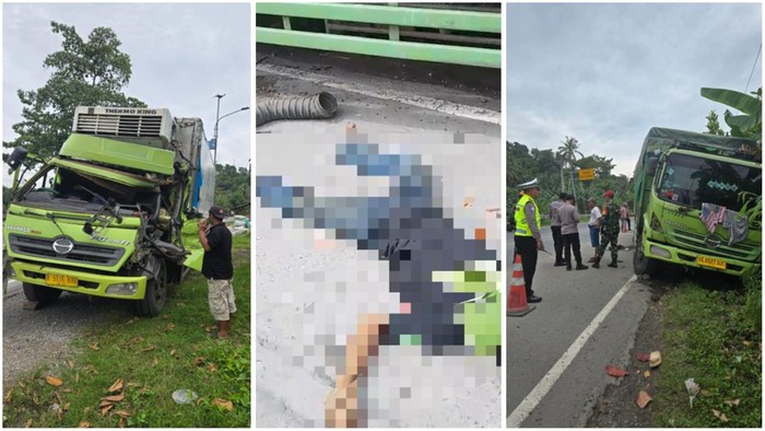 Akibatnya, truk fuso tersebut menabrak satu unit truk fuso lain yang berada di pinggir jalan. Benturan keras tak terhindarkan dan menyebabkan tiga orang meninggal dunia di lokasi kejadian.